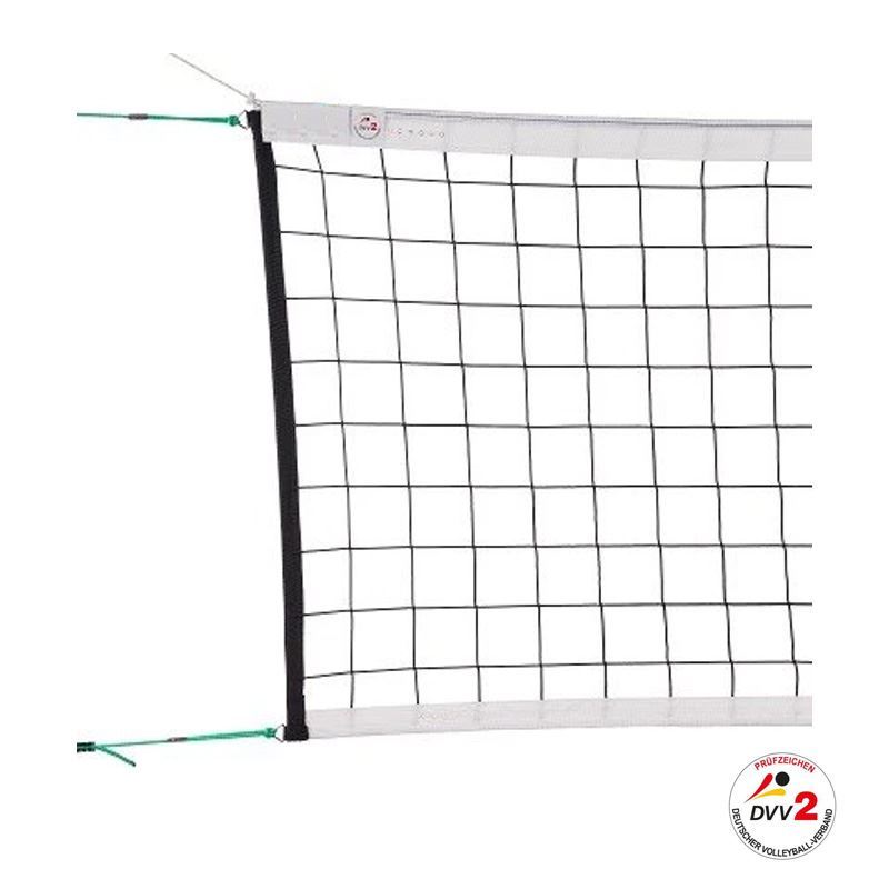 Knooploos competitievolleybalnet, 4-punts ophangsysteem volgens DVV2 voorschriften.