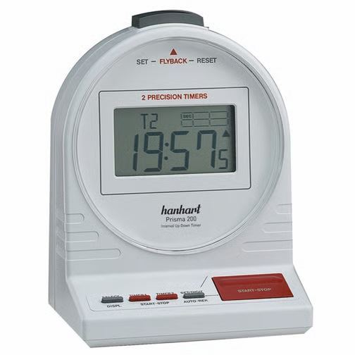 Een electronisch precisie instrument met een 2 lijns digitaal display. De Prisma 200 heeft 2 programmeerbare timers die ingesteld kunnen worden op een nauwkeurigheid van 1/10 van een seconde of 1/100 van een minuut. Functies: start/stop/reset, addition, flyback, countdown met instelbaar akoestisch alarm.